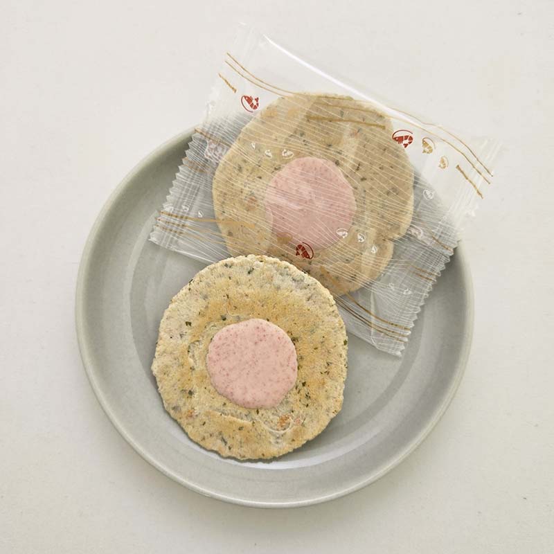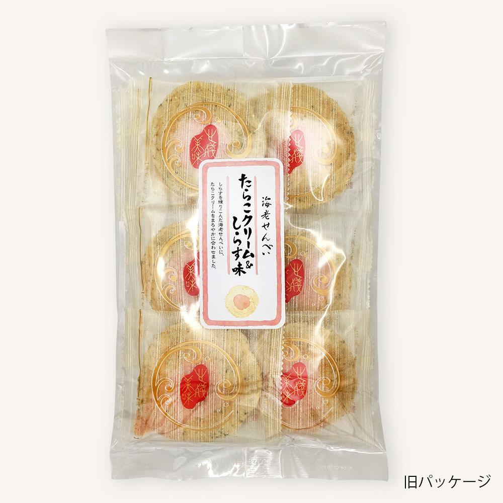 しらすとあおさを混ぜた磯香るえびせんべいと、なめらかなたらこクリームで、ふくよかでクリーミーな美味しさに。海の幸の新しい美味しさと出会える1枚です。