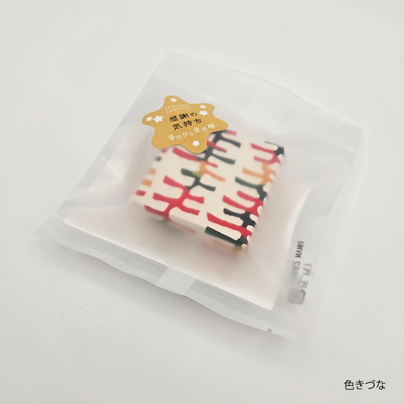 手のひらにのる、小さなかわいい和紙の小箱の中には、キラキラお星さまのような金平糖が入っています。
