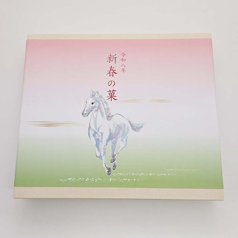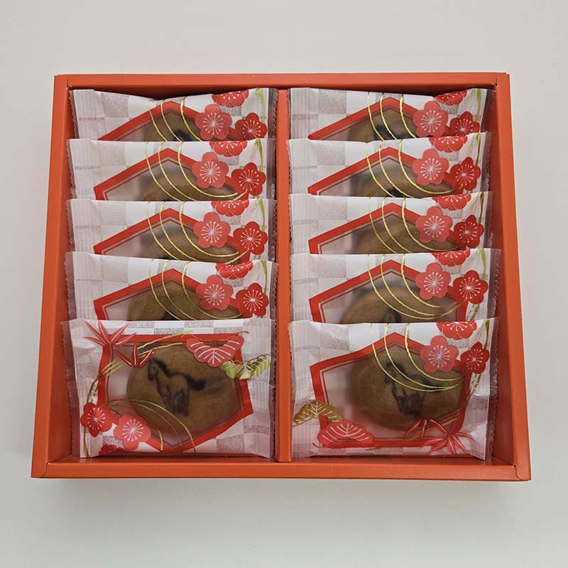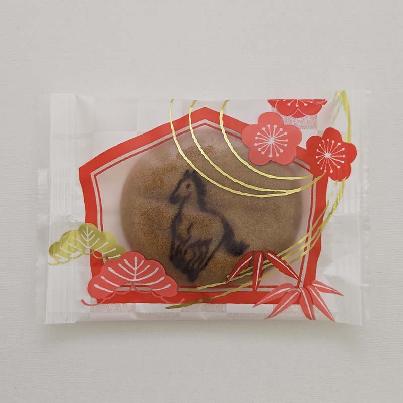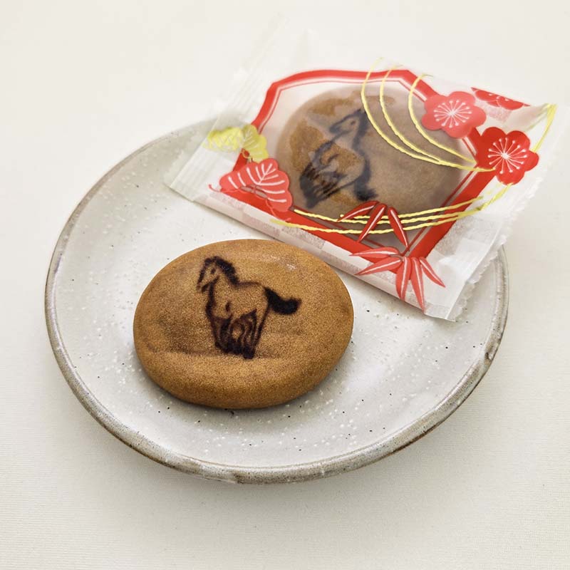 甘く優しいミルク味の乳菓まんじゅうに、干支「午」の絵をあしらった「絵馬まんじゅう」。