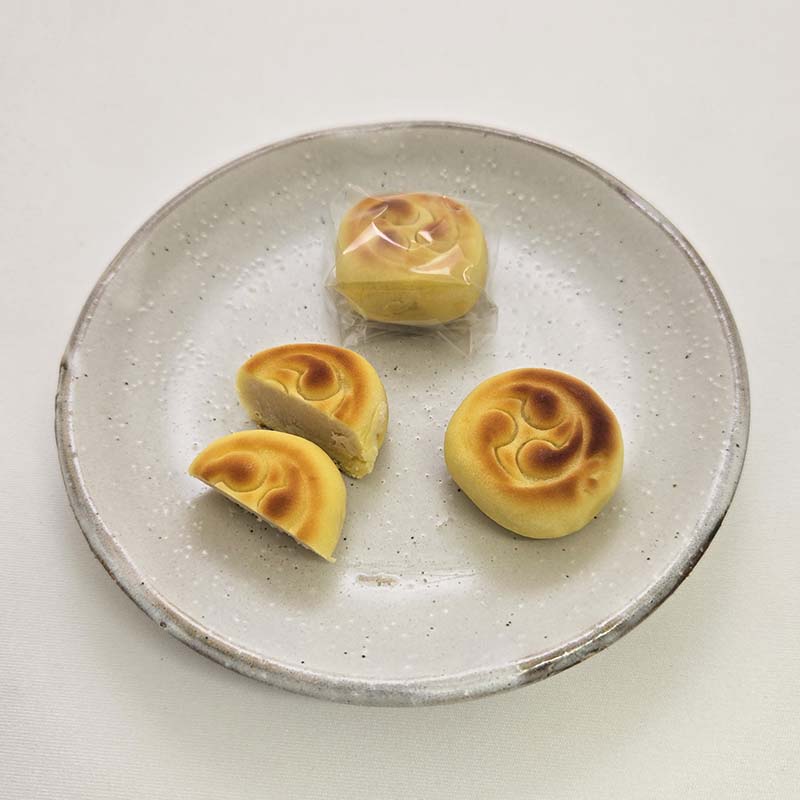 通年の半生菓子。中には柚子風味の白生餡が入っています。
