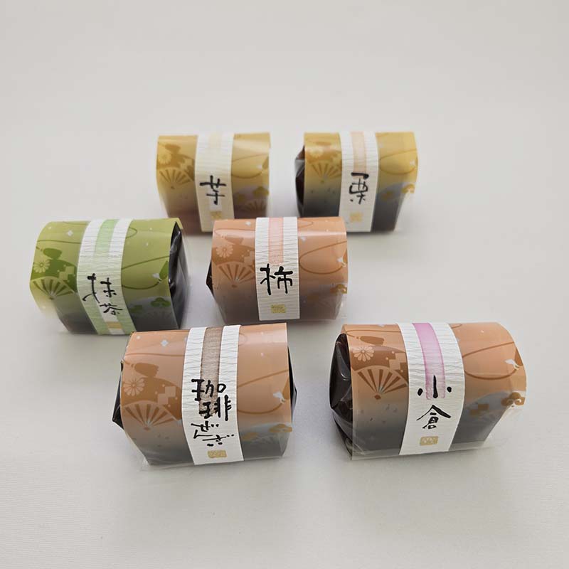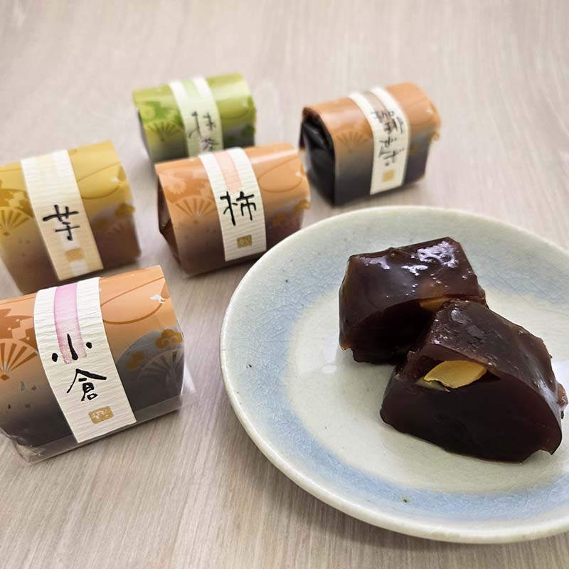 秋冬におすすめの5種類の羊羹と、珈琲ぜんざいが楽しめる袋入りのコンパクトな羊羹。