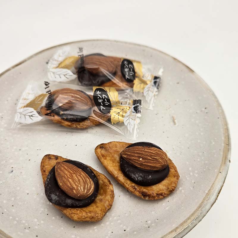 国産水稲餅米使用のおかきに、スイートチョコとアーモンドとトッピング。3つの味が絶妙のバランスでミックスされた新感覚のおかきです。
