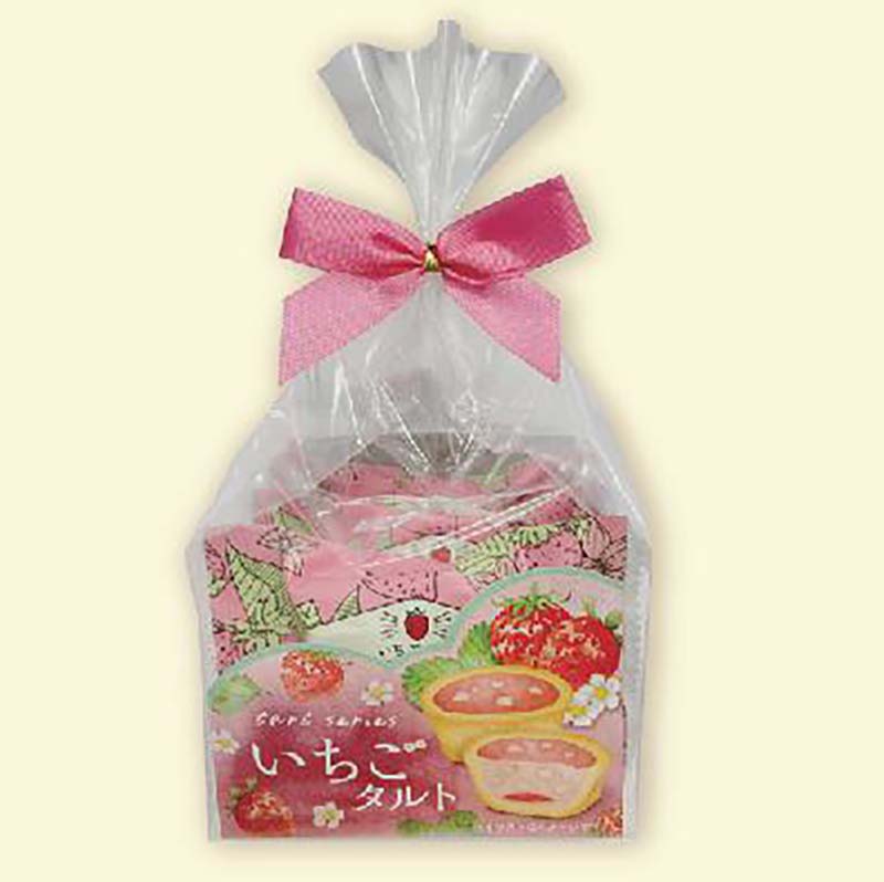 いちご風味の生地に、いちごのジャムとホワイトチョコチップを練り込み焼き上げた、やさしい味わいのタルトケーキです。
