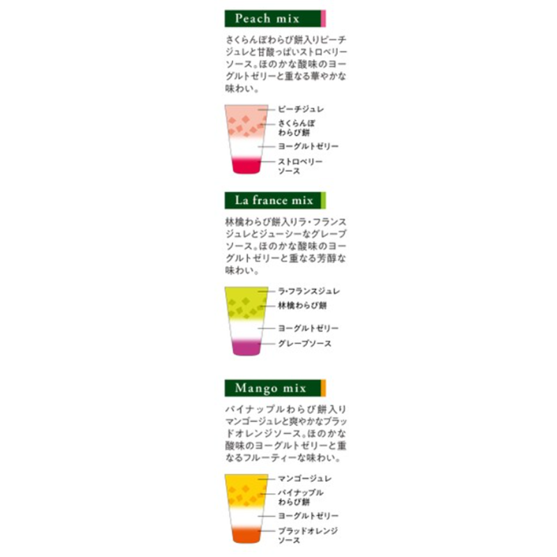 口どけの良いジュレともちもちのフルーツわらび餅。